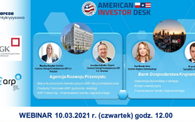 On Wednesday, March 10, 2021 the American Investor Desk had its second event called " Inwestycje, finansowanie handlu zagranicznego, wsparcie: webinar Agencji Rozwoju Przemysłu S.A. i Banku Gospodarstwa Krajowego." We had the pleasure to host Monika Konofał, Dyrektor Centrum Obsługi Przedsiębiorców and Jarosław Łokietko, Ekspert Centrum Obsługi Przedsiębiorców from the Agencja Rozwoju Przemysłu S ...